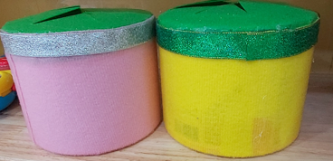 준비물: 원형 통(콜라겐 영양제 빈 통을 이용함), 부직포, 붙이는 부직포, 리본끈, 글루건 까꿍이 상자 속에 과자나 장난감을 넣어두고 탐색활동을 진행하였습니다.아이들이 진짜 즐거워 했습니다.
