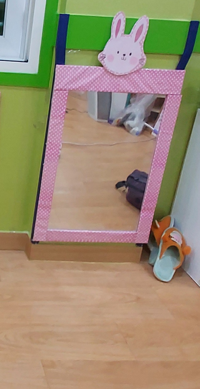 안전거울에 토끼 캐릭터를 달아서 교실을 장식했어요.