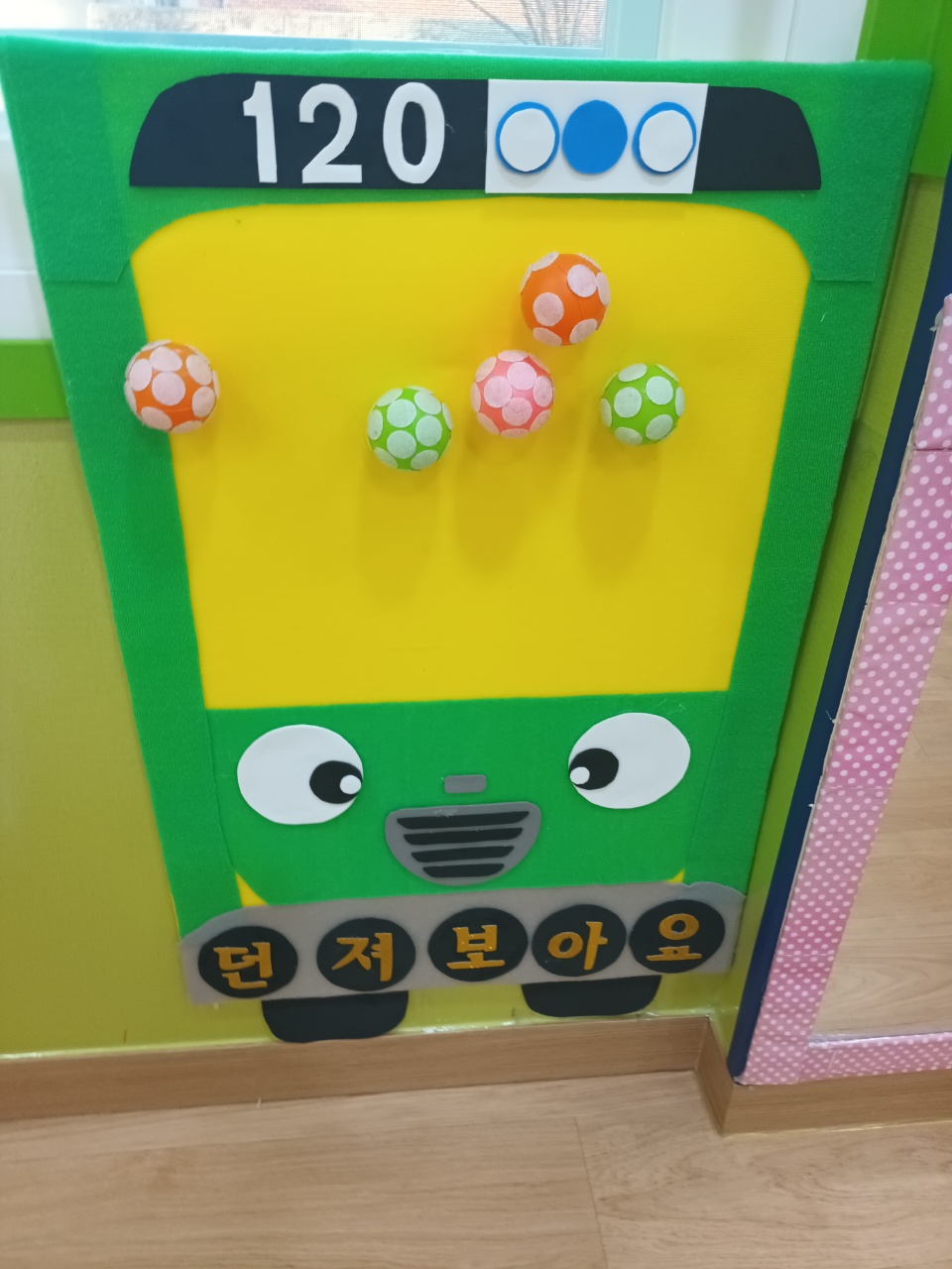 타요 캐릭터를 이용해서 공 던지기 놀이를 할 수 있는 장난감을 만들어 주었답니다.