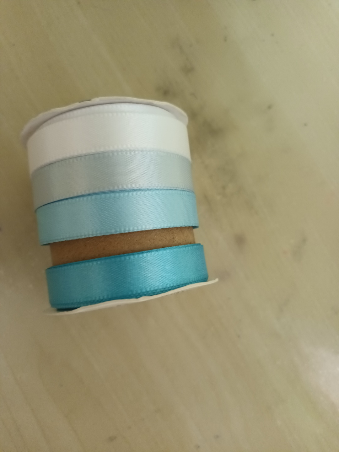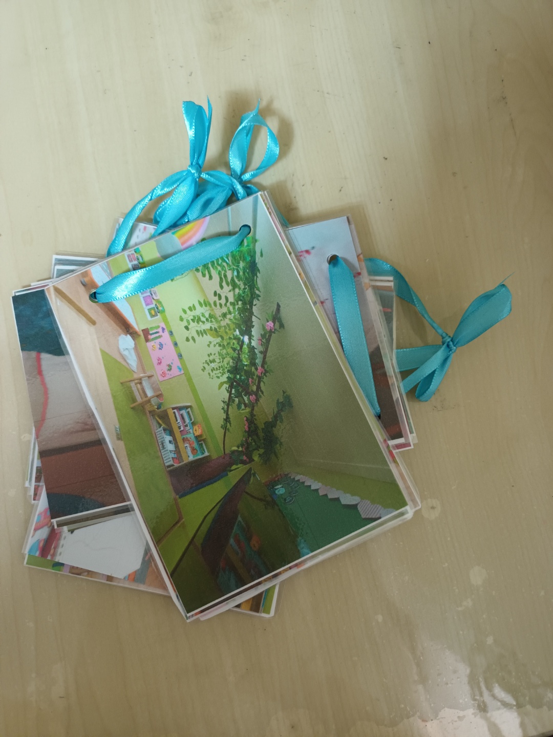 2. 다이소에서 파는 리본끈으로 연결한 후 예쁘게 리본 모양으로 묶어서 책자를 완성합니다.