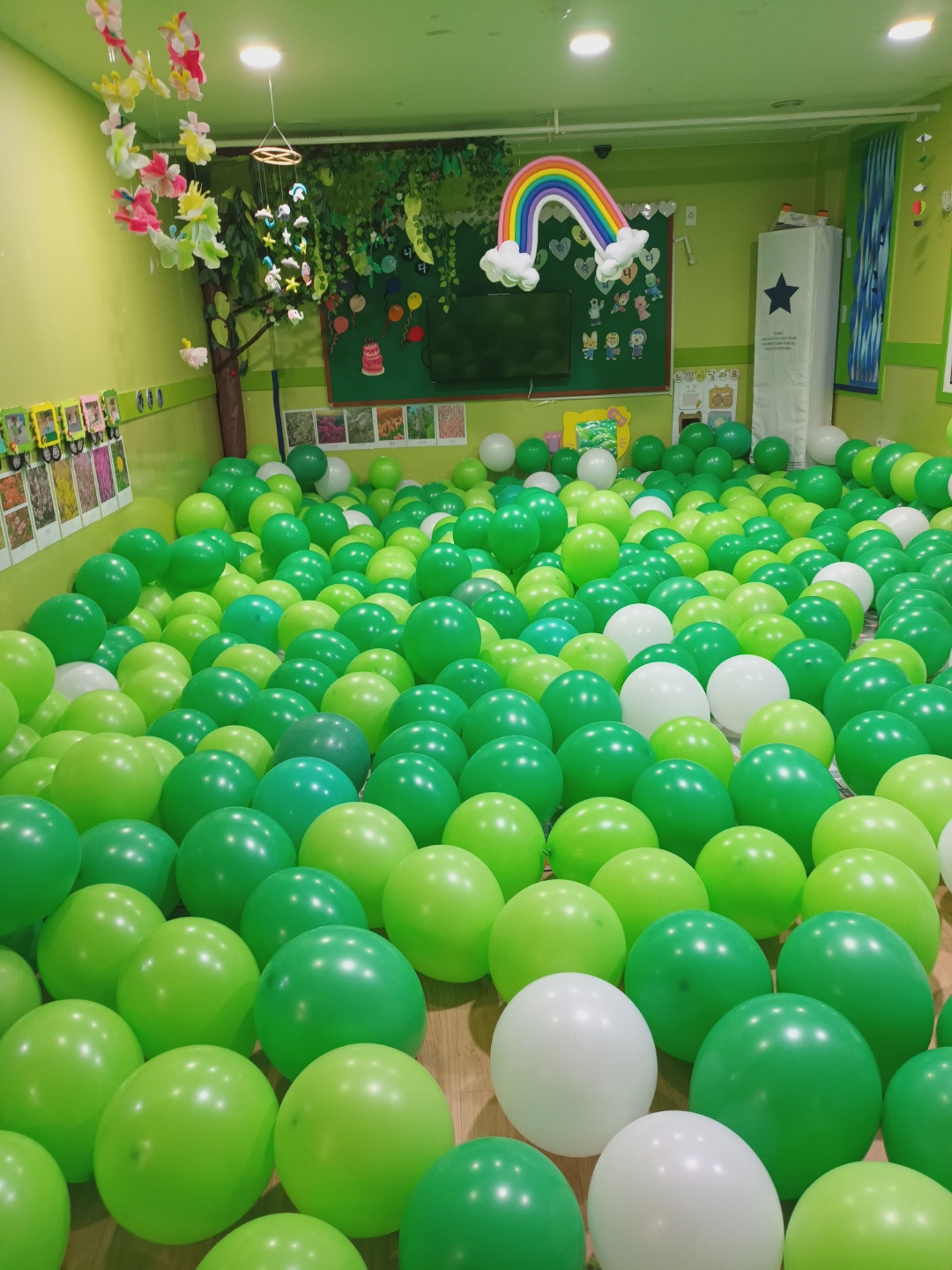 5월 어린이날을 맞이하여 어린이날 이벤트를 위해 교실을 꾸몄어요! 행사 테마인 "green"에 맞게 녹색 계열 풍선으로 교실을 장식했어요.풍선 아래에는 보물찾기 쪽지를 넣어두었어요(막대사탕ㆍ초콜릿ㆍ비타민). 쪽지 3장을 가져오면 선물을 줄거에요.
